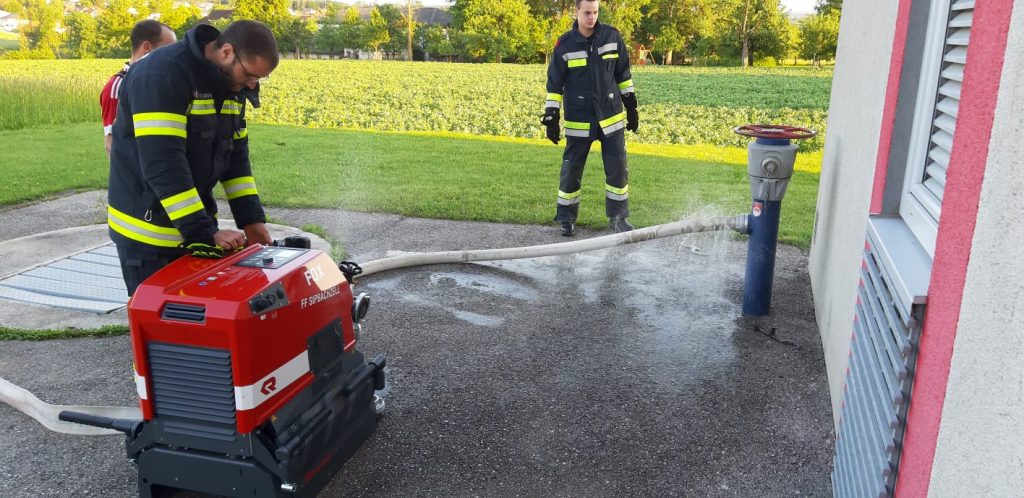 Durch die Lockerung der Covid-19-Einschränkungsmaßnahmen konnte der Übungsbetrieb der Feuerwehren unter besonderen Bedingungen wieder aufgenommen werden. So nutzten wir die Chance und stürzten uns gleich in die erste Einsatzübung „nach Corona“. Aufgeteilt in 2 Gruppen wurde am Mittwoch, den 27. Mai, sowie eine Woche darauf, am 3. Juni, dieselbe Übung abgehalten. Bearbeitete Themen waren die Handhabung unserer, im letzten Jahr angeschafften, Pumpe, kombiniert mit verschiedenen Arten des Löschangriffs, sowie Gerätekunde am TLF.