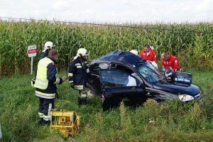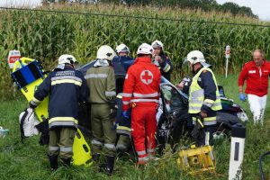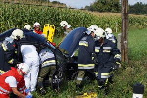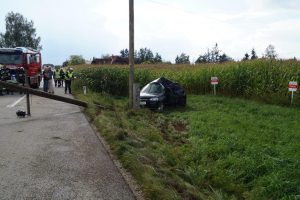 Am 05.09.2016 wurde die FF-Sipbachzell zu einem Verkehrsunfall mit einer eingeklemmten Person alarmiert. Das verunfallte Auto prallte gegen einen Strommasten, somit waren die Bergungsarbeiten nur unter erschwerten Umständen möglich. Die Feuerwehr befreite die Person mittels hydraulischem Rettungsgerät aus dem stark demolierten Fahrzeug. Die verunfallte Person wurde dann mit dem Rettungswagen abtransportiert. Die Eggendorfer Landesstraße war einige Zeit gesperrt, da die Stromleitung mitten auf der Fahrbahn lag.